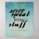 quote poster never sweat the small stuff text on vintage style teal blue distressed background wall art decor for home or office.
