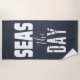 Quote "Seas The Day" Bold White Lettering On Dark Gray Background | Beach Towel. Beach lover? Boater? Sailer? Positive outlook? Makes a perfect gift for for the person who cannot stay away from the water or an excellent addition to your beach towel collection at the vacation rental, beach or lake house, cabin or cottage. Perfect dry off with after a swim! Design by Jenn's Emporium.