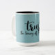 Robin egg blue background with quote in black "Trust the timing of you Life" on mugs. Mug options are available. Look for other home decor products by Farmhouse Living.