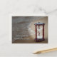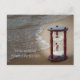 Quote with sand timer on beach holiday postcard
