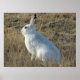 Snowshoe Hare Poster. Sometimes even mother natures plans get fouled up by the weather, this snowshoe hare has changed into it's white winter coat but the winter snows are late and instead of being camouflaged it now stands out against the brown prairie grasses.