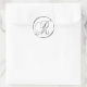 R Monogram Faux Silver Envelope Or Favor Seal. These classic round stickers are printed with non metallic ink on a flat sticker to look like silver. They are not beveled or embossed monograms but are designed to look like they are beveled or embossed monograms. These silver monogram seals are printed on a white background unless you select a different color background before you proceed to checkout. In addition to being pretty wedding stationery supplies, these elegant wedding invitation envelope seals also make great monogrammed custom Christmas card seals, personalized holiday greeting card envelope seal stickers and customized Xmas card monogram seal stickers.
