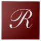 R Monogram, White on Dark Red, Ceramic Tile