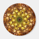 Red, orange, yellow and gold colored fractal design that looks like the sun.