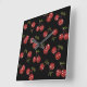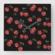 RAB Rockabilly Very Cherry Cherries On Black Square Wall Clock