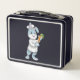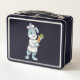 This is a standard metal lunchbox that appears to work just fine. We designed this box ourselves with an uploaded photo and custom text on the front and back. It looks absolutely beautiful except the front of the lunchbox is not centered like it shows in the photo. The print borders don't align with the inset flat part of the box where the preview photo online showed it perfectly centered in there. The back looks nice and centered though.