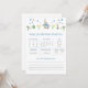 The Rabbit baby shower predictions and advice game design features a white background with watercolor Rabbit with elements from the garden, "baby predictions + advice" in a fancy serif in blue, the wording "advice for the parents to be" in a blue font. This baby predictions & advice game template is the perfect choice for a Rabbit baby shower game.