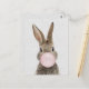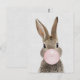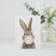 Rabbit blowing bubble gum gray linen postcard