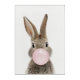 Rabbit blowing a pink bubble gum. Nursery art to decorate your child's room.