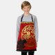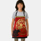 In a square are one black Rabbit paper-cut, placed in the left corner looking at a golden round shape inside of which is the second rabbit with ideogram. Behind the scene there is a red background on which decorative and ornate letters form the words: RABBIT YEAR. Design on kids all-over printed apron. Matching greeting vertical and horizontal cards, holiday postcard, sticker, tissue paper, favor boxes, party supplies and more... Perfect for Chinese New Year of the Rabbit 2023 or birthday (people born in Rabbit Year).
