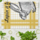 French recipe "rabbit à la mustard" , large black and white rabbit printed on a mustard traditional style grid.