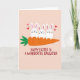 This greeting card shows three stylized white rabbits 🐰 lined up across the upper middle, their pink inner ears and tiny dark eyes paired with small smiles that seem to match like close friends. They sit shoulder-to-shoulder on a large orange carrot that stretches horizontally, suggesting a cozy togetherness as they lean in as if sharing a quiet joke. A deep green leafy top sprouts from the carrot’s left end, adding a fresh spring touch against the soft peachy-pink background. Above the rabbits, small hearts float in mixed reds and pinks, hinting at affection in the way the trio appears happily clustered. The middle rabbit’s grin opens a bit wider, like it’s giggling while the others look on with gentle, approving smiles 🐇. Centered below the illustration, a celebratory message appears in deep red lettering, standing out clearly against the lighter backdrop. The carrot is a saturated orange with simple shading, and the hearts are sprinkled in a loose arc above the rabbits.