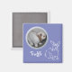 Round Photo Frame Customizable Pet Memorial Frame a photo of a special friend and create a cherished memory. This rabbit themed photo frame magnet has a round hole to add your bunny's picture and you can type in the name of your rabbit underneath the photograph. The white ink drawing features a cute bunny. Available in a blue background with a silver look frame.