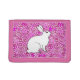 White bunny inspired by traditional Japanese rabbit designs, rendered in Illustrator, backed by a tiled design of pale pink and orchid spring flowers