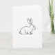 This card features a simple line drawing of a small long-eared animal, outlined in black on a white background, with a calm, attentive pose 🐇. Centered on the front and facing right, it stands as if pausing to listen, giving the scene a gentle, companionable mood. Smooth curved lines shape the body, and the slight lift of the head suggests a quiet curiosity, like it’s watching for a friend nearby. The tall ears rise straight up and narrow at the tips, adding a soft sense of alertness without any extra shading. A single dark round eye becomes the main focal point, creating a tender, thoughtful look. Any front text can sit above the illustration in small black lettering, leaving plenty of open space around the figure 🌷. Near the back, a tiny tail is shown with a few wavy strokes that lightly break the otherwise flowing outline.