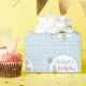 Cute Rabbit Blue birthday party personalized gift wrapping paper with carrot cakes and balloons. Small boys birthday party theme. Blue & white plaid frame with carrot cake and Peter Rabbit graphic. Personalize with your choice of name. Perfect for the sweetest bunny birthday party.