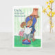 A Retirement Good Wishes card for an Uncle with a rabbit enjoying relaxing with his newspaper and cuppa in his favourite armchair; from a watercolour painting by Judy Adamson. The inside is left blank for your own message and I can quickly and easily change the wording on the front cover on request through my store.