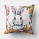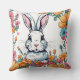 Rabbit surrounded by flowers throw pillow