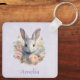 Rabbit Surrounded by Pastel Flowers Cute Keychain