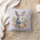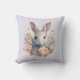Rabbit Surrounded by Pastel Flowers Cute Throw Pillow