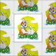 A funny illustration of a rabbit who loves water. This cute bunny is wearing a lifejacket and helmet as he floats down a river on a green spotty innertube.