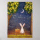 Rabbit with a Suitcase Looking Into the Night Sky Poster