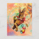 RABBIT WITH COLORFUL EASTER EGGS HOLIDAY POSTCARD