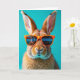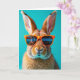 This design shows a close-up portrait of a friendly rabbit 🐰 with russet-brown fur and fine whiskers, wearing orange-framed, dark-lensed sunglasses that give it a charming, confident look. The background is a smooth teal-to-cyan field that makes the warm fur tones stand out. Soft, even lighting brings out the plush texture along the cheeks and around the nose, while a gentle sheen glides across the lenses. The rabbit’s forward-facing pose and slightly lifted muzzle suggest an easy, companionable “you and me” moment, like it’s leaning in for a shared joke. Near the top, a short Easter greeting sits centered in small white letters, with a second line placed lower in pale orange to echo the frames 🌷. The contrast between the organic fur and the sleek glasses adds a modern, dressed-up twist without crowding the scene. The orange frames show a thin highlight along the rim, and the lenses carry a muted blue reflection against the teal backdrop.