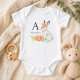 This sweet baby bodysuit features a charming watercolor bunny surrounded by delicate florals, creating a soft and timeless look. Personalized with your baby’s name and initial, it adds a special touch that makes it perfect for gifts, photos, or everyday wear. Crafted for both comfort and style, this adorable design is sure to become a treasured keepsake.