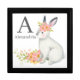 This sweet keepsake box sign with watercolor rabbit and pink flowers will make a unique accent piece for any nursery. Personalize it with your desired name and initial and give as a memorable gift.