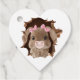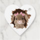A cute brown rabbit with its ears pulled up with a pink hair clip, and a pink pacifier in its mouth,