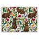 Hand-drawn rabbits and woodland flora, ferns mushrooms and beriies and bugs