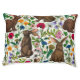 Hand-drawn rabbits and woodland flora, ferns mushrooms and beriies and bugs