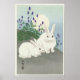 This gorgeous image of two rabbits huddled by a clump of bush clover in the full moon is the perfect addition to any space in which you want a touch of serene nature. Ohara Koson was one of the foremost Japanese print artists of the early 20th century. He was renowned for beautiful woodblock prints of birds and flowers and was part of the Shin-Hanga (new prints) movement. (The red Hoson seal is beneath Hoson's signature and the Kawaguchi and Sakai publisher copyright in the lower left.)