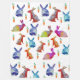 Watercolor rabbits in variety of colors, carrots, Easter mood, custom background.