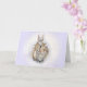 This card is blank on the inside to personalize a message. The little rabbit is seen from the front on one side and from the rear on the other... very cute. Good card to use when giving a gift. The quality is very good. The colors match what you see on your computer. Well done.