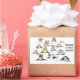 13 Rabbits are popping out of their holes. Text reads "Thanks a HOLE bunch". Rabbits are done in watercolor and pen and ink in green, blue, brown, orange, pink, gray, black, and white. (You can personalize text and background color, just hit the customize it button)