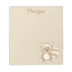 This beige raccoon graphic personalize notepad features a beige background with a brown and white raccoon at the bottom right. The name on the top is in brown print. Place your order today!