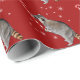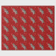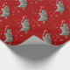 Wrap your presents with an adorable raccoon eating a giant candy cane surrounded by snowflakes on a red background.