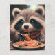 A cute raccoon eating spaghetti and blueberries fantasy art