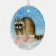 Raccoon in pink boots Christmas or winter ornament