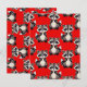 Cute little cartoon Raccoon Pattern Design on a Red background