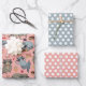 Playful raccoons and delicious desserts with corresponding polka dot sheets.