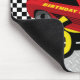 Rev up your child's 6th birthday with our race car birthday design. Featuring a red race car with racing stripes, checkered flags and a big number 6. Side of car says BIRTHDAY CHAMP. Perfect for your little race car winner. Diamond plate background on selected products. On T-shirts, personalized birthday party invitations, stationery, envelopes, thank you postcards, party favors, postage, mugs, keepsakes and more! PinkInkArt original!