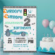 Rev up the excitement with this editable Race Car Birthday Invitation! Featuring the fun phrase “Vroom… Vrooom Start Your Engines For”, bold tire tracks, and a cool racing car in black, blue, and green, this invitation is perfect for boys ages 2 to 10. Easily customize the child’s name, age, date, time, and party details. Ideal for racing lovers and high-speed birthday themes!