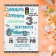 Rev up the excitement with this editable Race Car Birthday Invitation! Featuring the fun phrase “Vroom… Vrooom Start Your Engines For”, bold tire tracks, and a cool racing car in black, blue, and green, this invitation is perfect for boys ages 2 to 10. Easily customize the child’s name, age, date, time, and party details. Ideal for racing lovers and high-speed birthday themes!