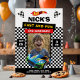 Celebrate in style with a thrilling racing theme, featuring bold cars, checkered details, and a personal photo design that makes the birthday unforgettable.