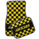 These stylish custom car mats make a great gift for the race driving enthusiast. Cover your car floors in style with this fun race car styled design that you can personalize. Featured in a golden yellow & black checker design with DIY text. Make it yours. ⭐This Product is 100% Customizable. Graphics and / or text can be added, deleted, moved, resized, changed around, rotated, etc... 99% of my designs in my store are done in layers. This makes it easy for you to resize and move the graphics and text around so that it will fit each product perfectly. 📌 (Please be sure to resize or move graphics if needed before ordering) You can also "TRANSFER DESIGN" on other Zazzle products and adjust the design to fit most of Zazzle items. (button is down on the right side of the page) Some of the text graphics have ready to fill in the box(es) or you can Click on the "CUSTOMIZE" button to add, move, delete, resize, background color or change any of the font or graphics. The design is made with high resolution vector and/or digital graphics for a professional print. 📌NOTE: (THIS IS A PRINT. All Zazzle product designs are "prints" unless otherwise stated under "About This Product" area) The design will be printed EXACTLY like you see it on the screen and on the product...so please make sure when you do your changes on the resizing of any of the graphics or text that it fits in the areas correctly and that your spelling and wording is how you like it to be in size, color and font. If you have any questions about the "DESIGN ONLY" or need help please contact me at ✉ siggyscott@comcast.net or visit my store link: https://www.zazzle.com/store/customfloormats (Copy and Paste) I'll be happy to help. ⭐ALL OTHER QUESTIONS (shipping, refund, the printing, the product, etc...) please contact ⭐Zazzle or the ⭐Maker directly. Thank you for the support and stopping by my store - CustomFloorMats. © Donna Siegrist⭐⭐⭐ ZAZZLE promises 100% satisfaction.