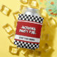 This car race themed birthday design is a thrilling and exciting design for kids who love cars and racing. The checkered flags along with bold typography and combination of red, white and black colors create this design visually appealing and engaging. This design can be a memorable and fun experience for your party guests.