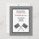 A fun invitation for any race car party. It features a black and white checked border. Two checkered flags sit on the bottom while the top is for your party information.